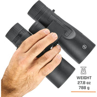 Ergonomically designed for comfort and control, these binoculars feature a large center focus knob for fast, precise focusing and twist-up eyecups that accommodate both eyeglass and non-eyeglass users. The rubber-armored housing with aggressive grip texture provides confident handling and drop protection during extended use.